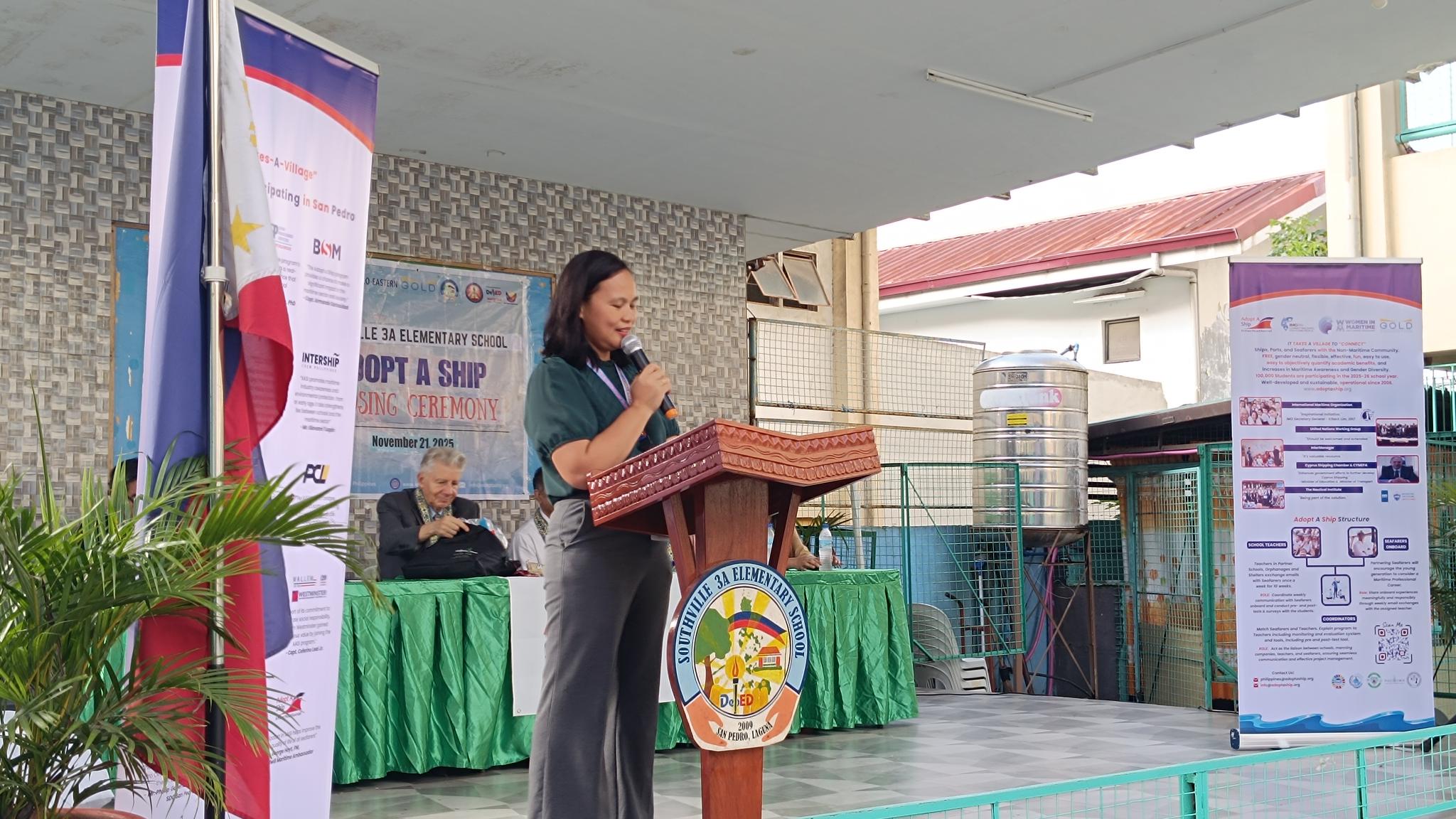 The program opened with warm remarks from Mrs. Berlyn Daguro, School Head, who expressed her heartfelt gratitude to all participants. She recognized the vision of Mr. George Hoyt in championing the Adopt-a-Ship Program, Anglo Eastern for generously sharing their time, knowledge, and support, the teachers for their dedication in integrating the program into their lessons, and the learners for their enthusiasm and curiosity. She looked forward to deeper collaboration in the years ahead.