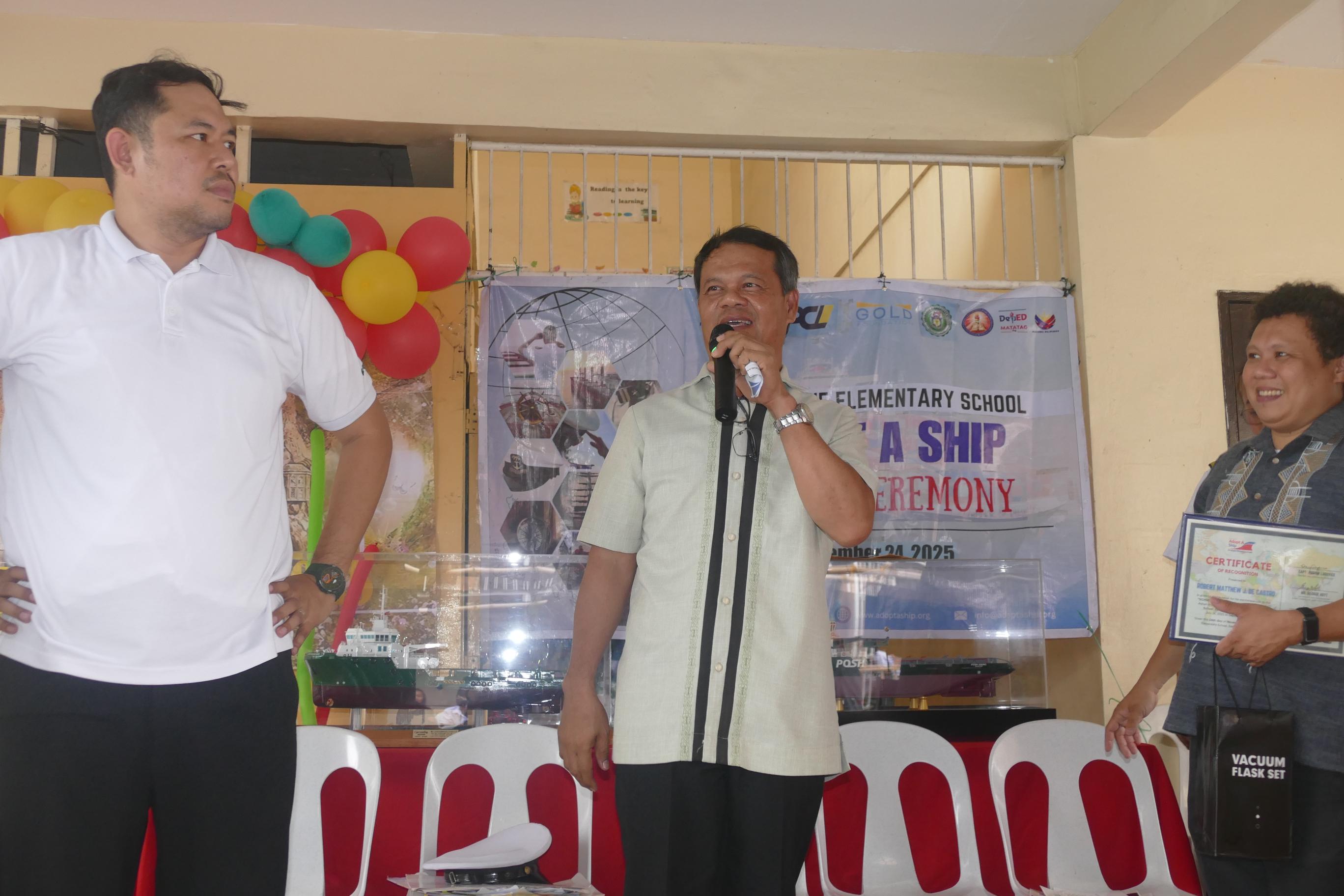 The program opened with the remarks of Mr. Robert Matthew de Castro, School Head of SRES, who extended his heartfelt appreciation to PACC and AASI for bringing the Adopt-a-Ship initiative to their school. He saluted the students for their perseverance in attending classes despite challenges such as flooding. He encouraged them with the words “Huwag susuko,” reminding them that there will always be people willing to help them reach their dreams. With positivity and determination, he expressed confidence that future seafarers could rise from San Roque Elementary School.